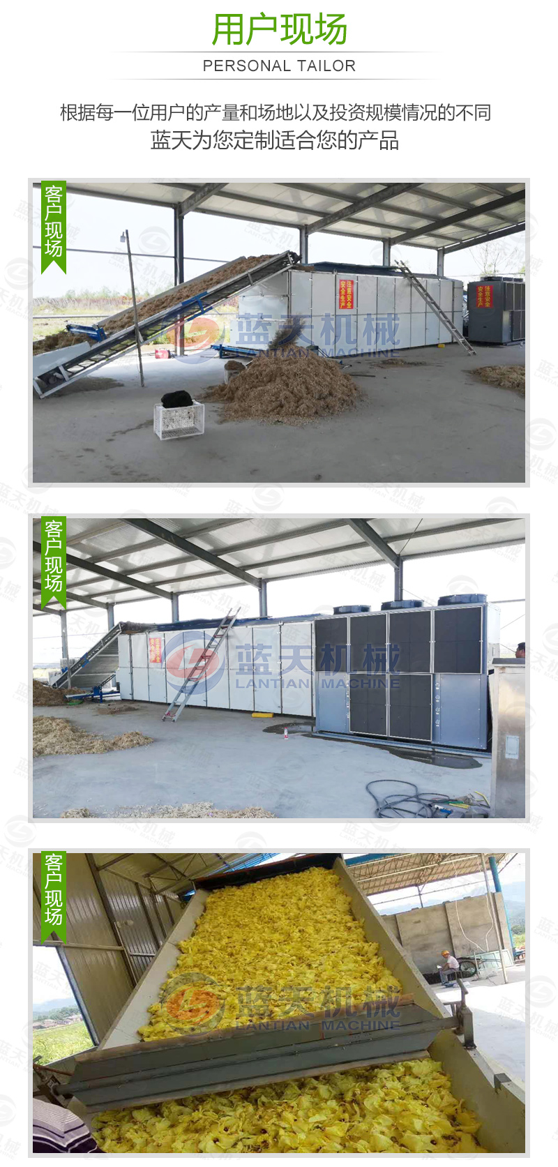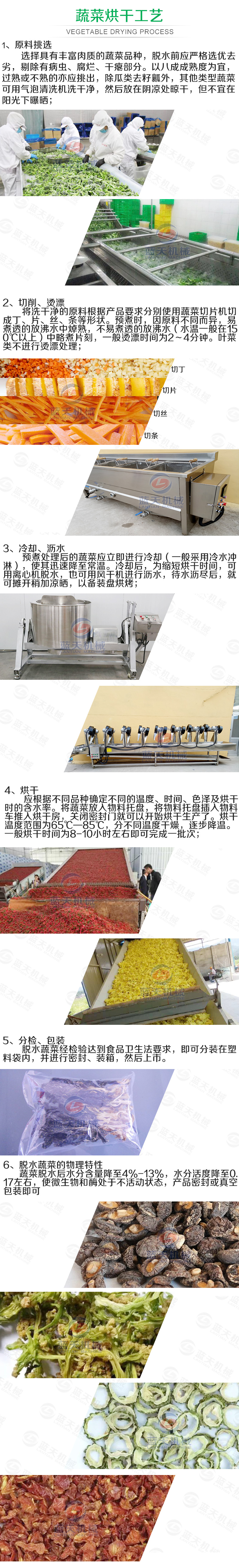 二、要烘干的蔬菜通過提升機(jī)將物料提升到輸送帶,輸送帶通過一個或幾個加熱單元組成的通道,每個加熱單元均配有空氣加熱和循環(huán)系統(tǒng),每一個通道有一個或幾個排濕系統(tǒng),在輸送帶通過時,熱空氣從上往下或從下往上通過輸送帶上的蔬菜,從而使蔬菜能均勻干燥烘干。