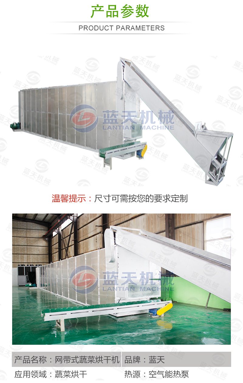 網(wǎng)帶式蔬菜烘干機(jī)可以用于:各類蔬菜脫水烘干、水果烘干、藥材烘干、枸杞烘干、香菇烘干、辣椒烘干、木耳烘干、面食等