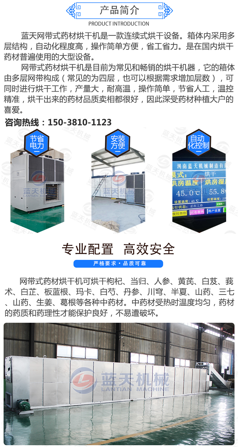 【藍(lán)天網(wǎng)帶式藥材烘干機(jī):】