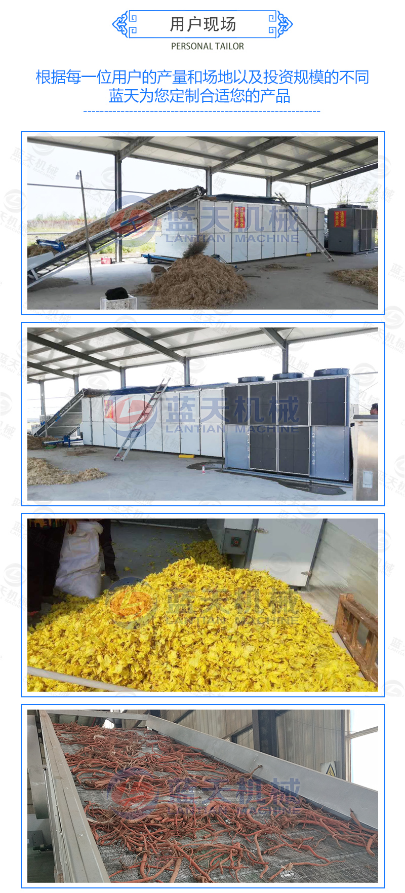 2、大型藥材烘干設(shè)備的熱泵主機(jī)與多層烘干箱分開,進(jìn)入烘干機(jī)內(nèi)的是純凈的熱風(fēng),沒有污染,更不會(huì)出現(xiàn)火災(zāi)隱患。